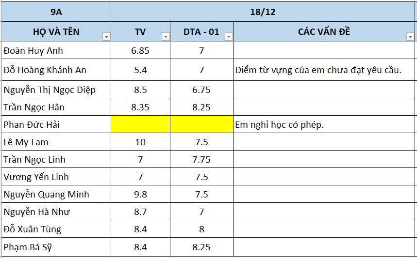 THỨ NĂM NGÀY 18/12/2025 - QLHS 9A