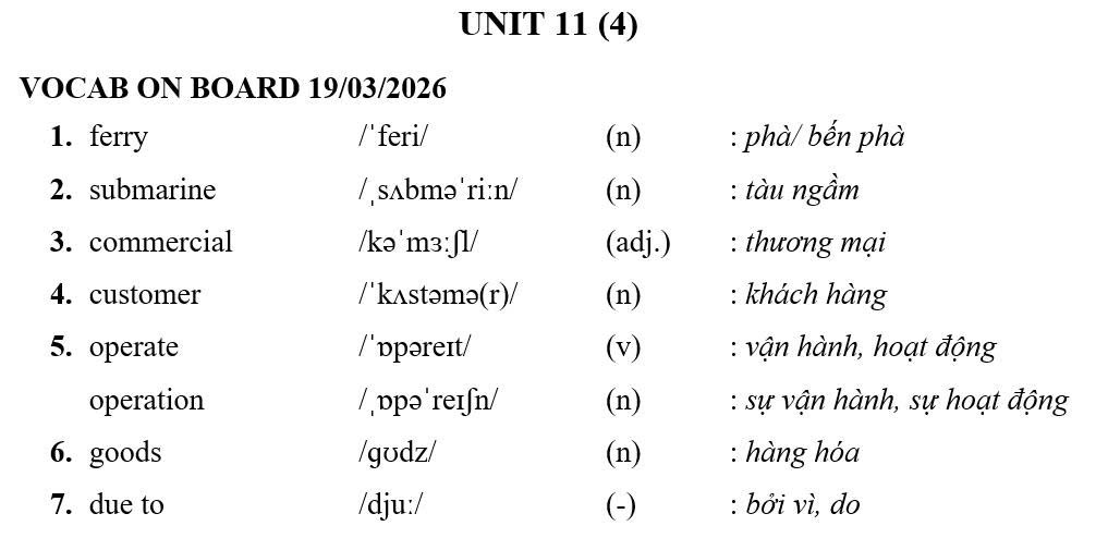 THỨ NĂM NGÀY 19/03/2026 - BTVN 7A