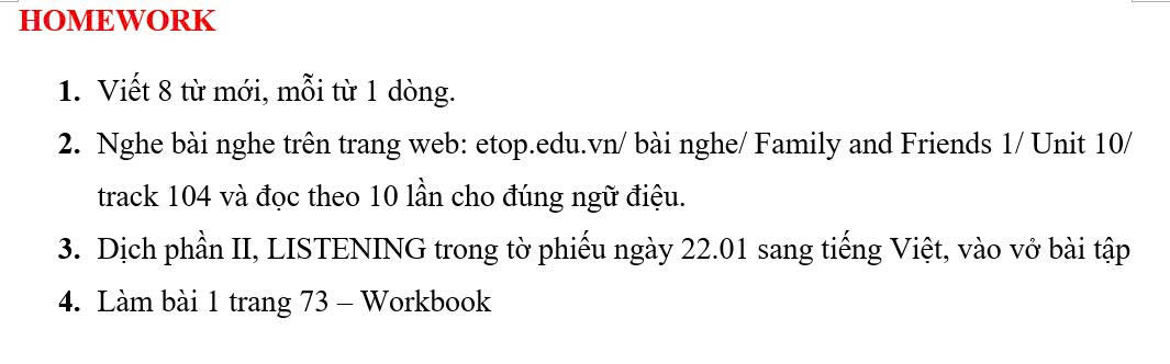THỨ NĂM NGÀY 22/01/2026 - BTVN 2