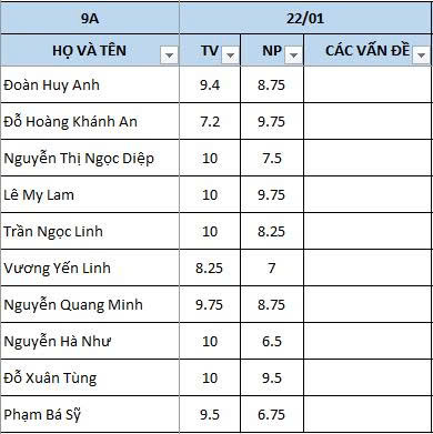 THỨ NĂM NGÀY 22/01/2026 - QLHS 9A