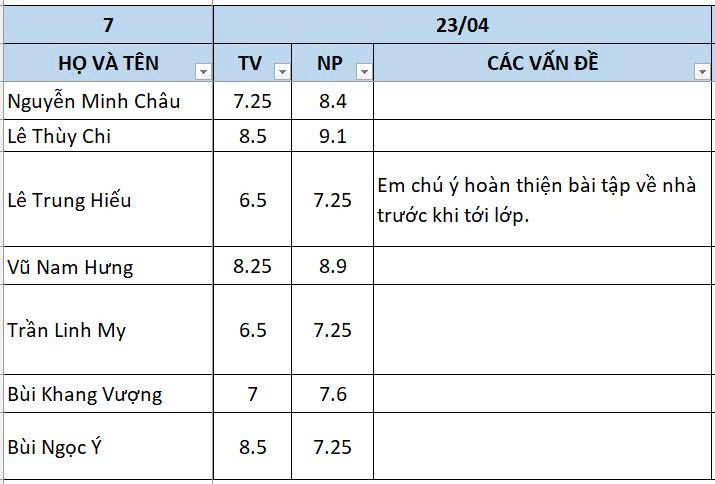THỨ NĂM NGÀY 16/04/2026 - QLHS 7A