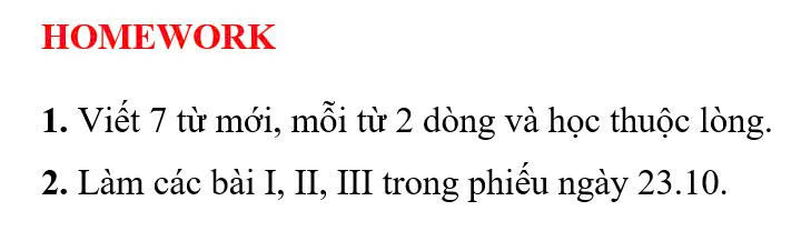 THỨ HAI NGÀY 20/10/2025 - BTVN 7