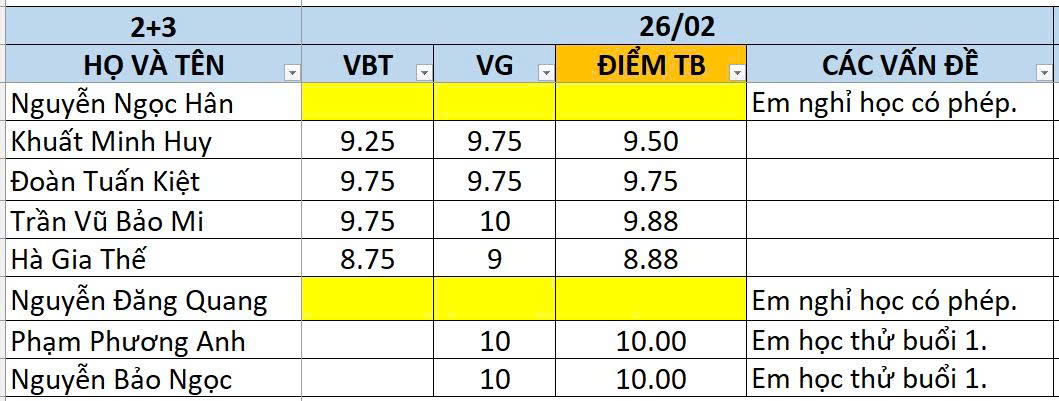 THỨ NĂM NGÀY 26/02/2026 - QLHS 2