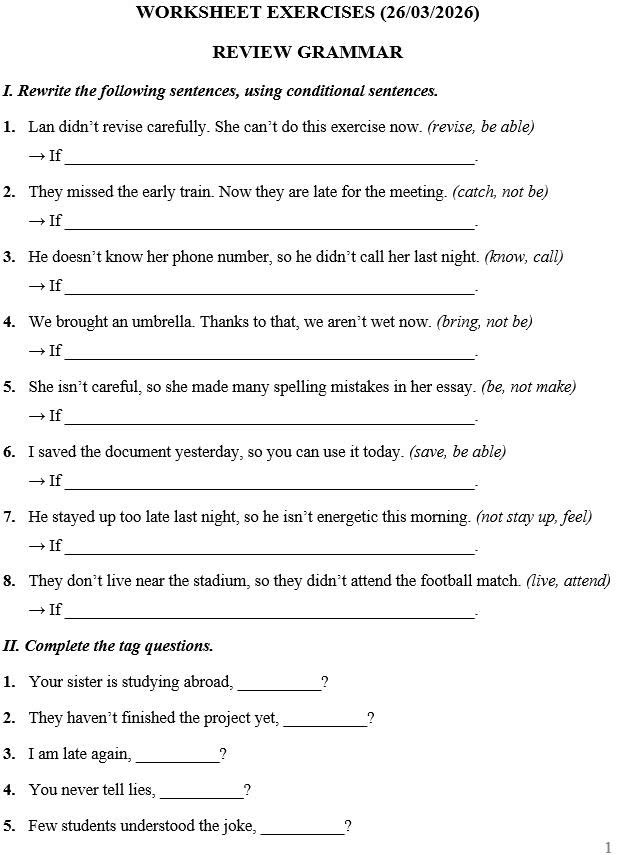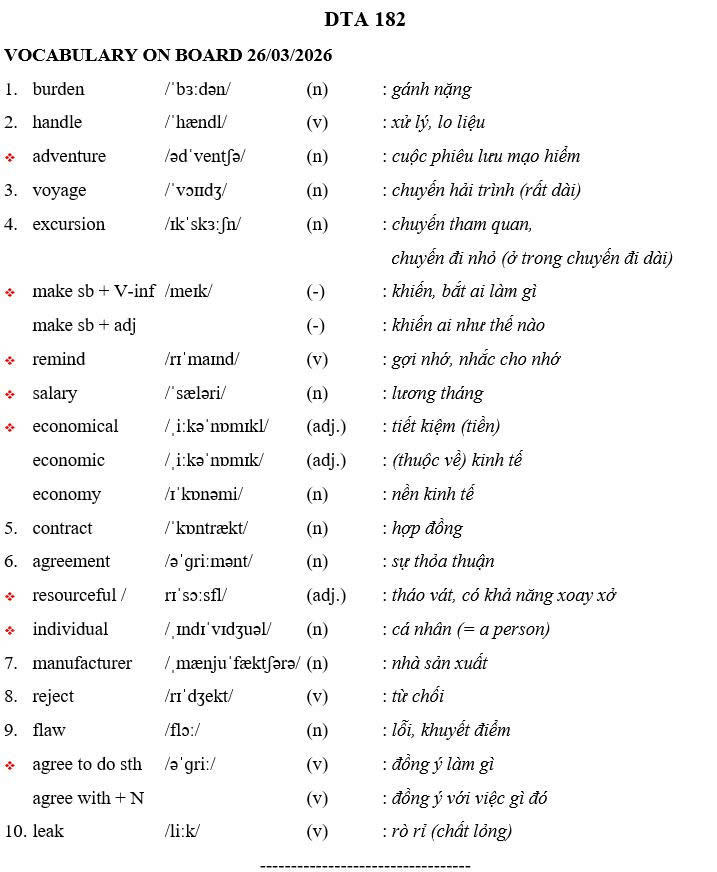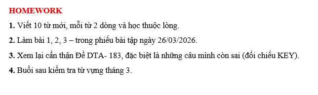 THỨ NĂM NGÀY 26/03/2026 - BTVN 9A