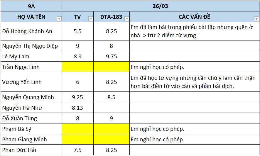 THỨ NĂM NGÀY 26/03/2026 - QLHS 9A