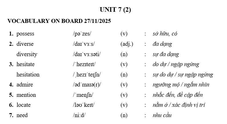 THỨ NĂM NGÀY 27/11/2025 - BTVN 9A