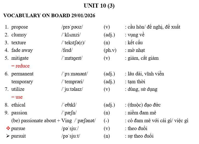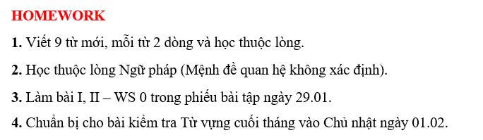 THỨ NĂM NGÀY 29/01/2026 - BTVN 9A