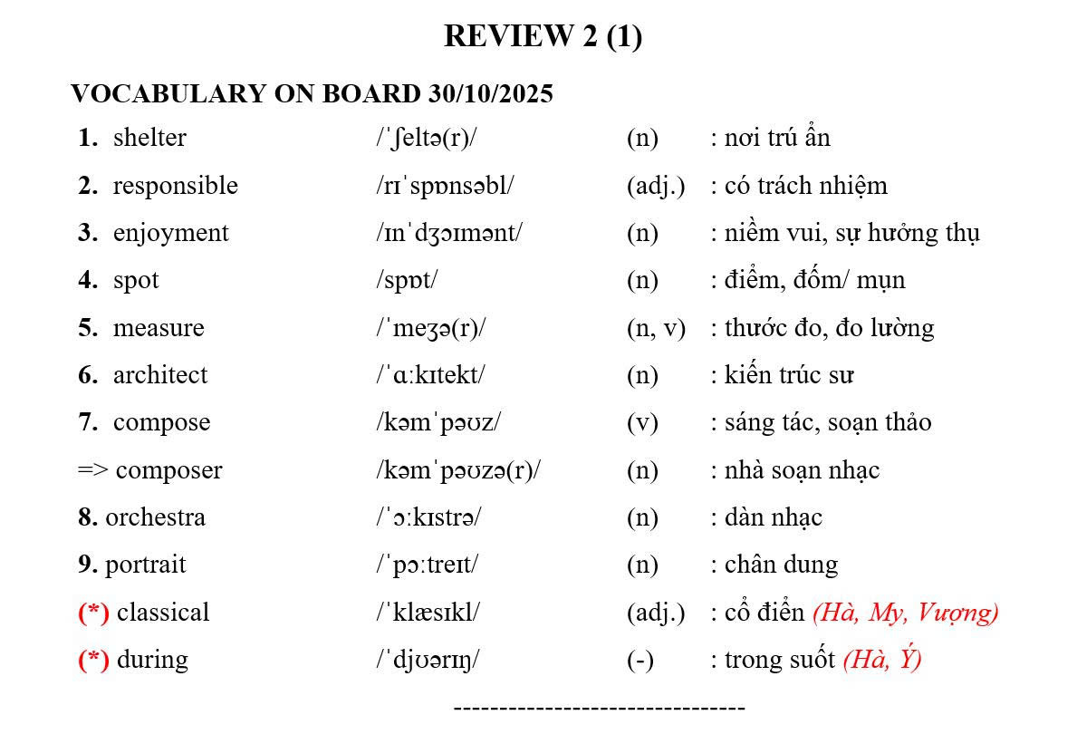 THỨ HAI NGÀY 20/10/2025 - BTVN 7