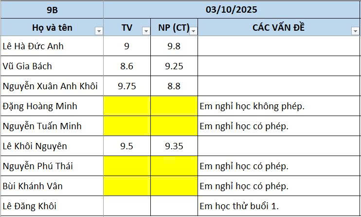 THỨ SÁU NGÀY 03/10/2025 - QLHS 9B