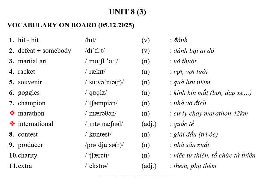 THỨ SÁU NGÀY 05/12/2025 - BTVN 6A