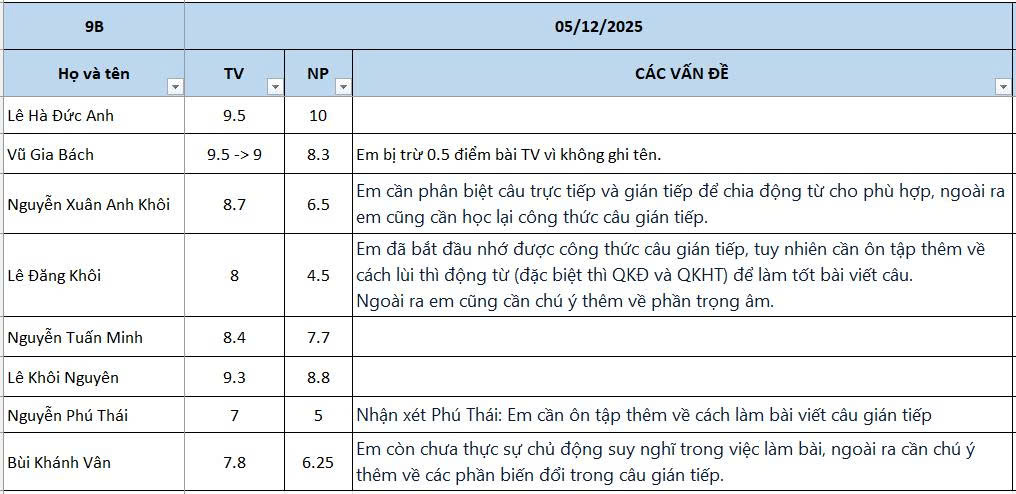 THỨ SÁU NGÀY 05/12/2025 - QLHS 9B