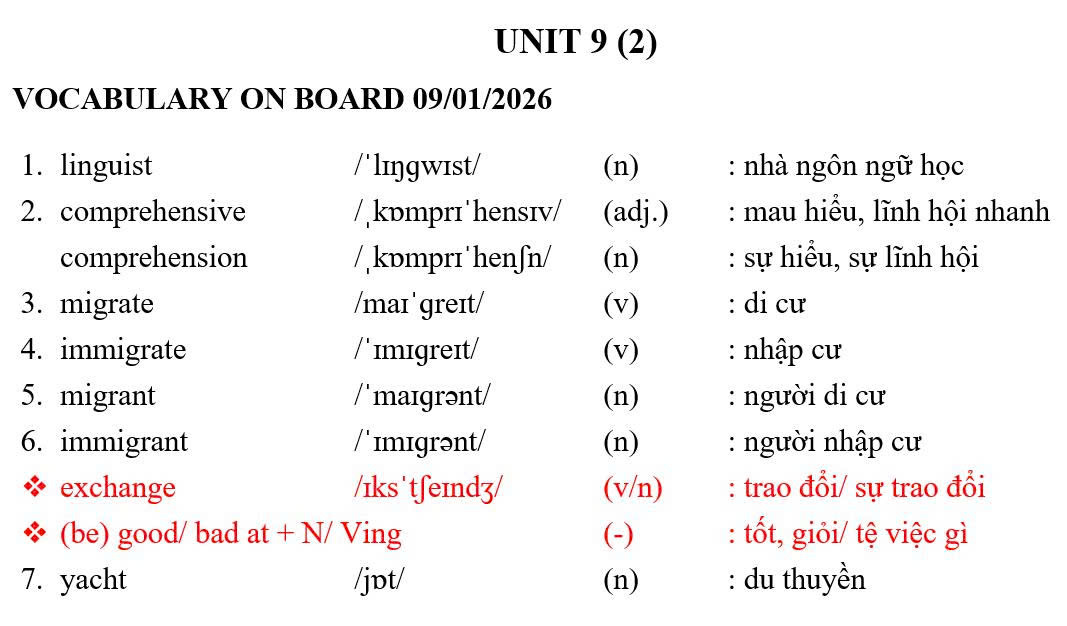 THỨ SÁU NGÀY 09/01/2026 - BTVN 9B
