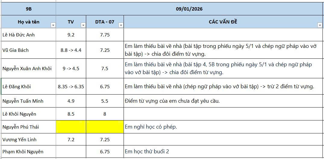 THỨ SÁU NGÀY 09/01/2026 - QLHS 9B