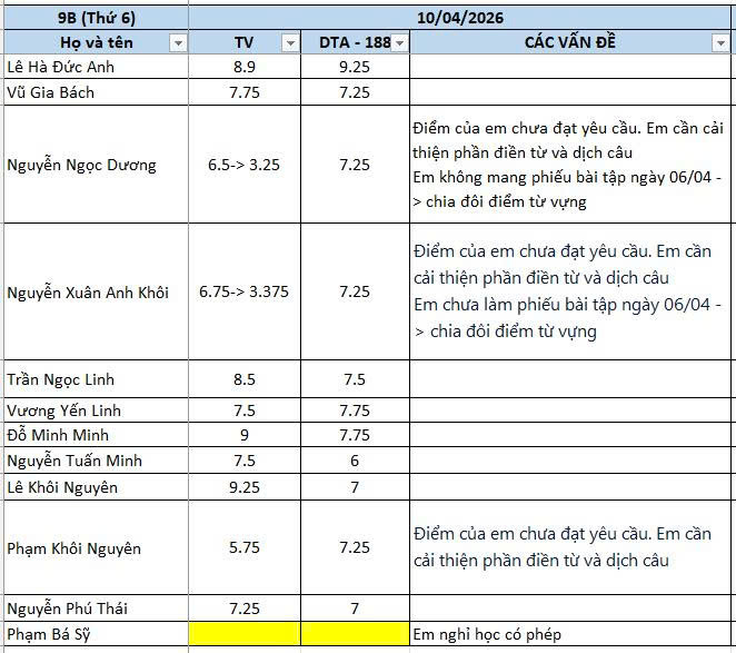 THỨ SÁU NGÀY 10/04/2026 - QLHS 9B