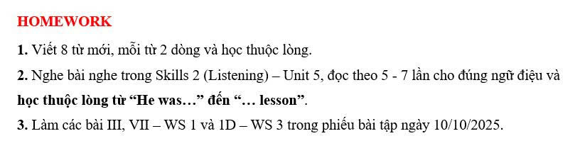THỨ HAI NGÀY 06/10/2025 - BTVN 9B
