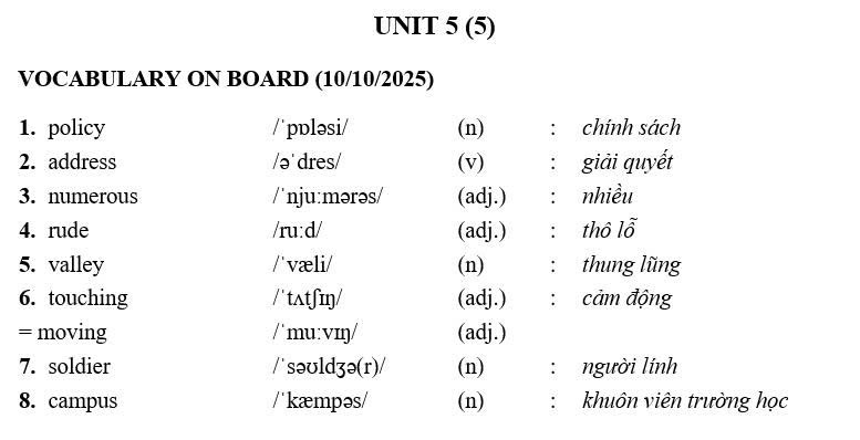 THỨ SÁU NGÀY 10/10/2025 - BTVN 9B