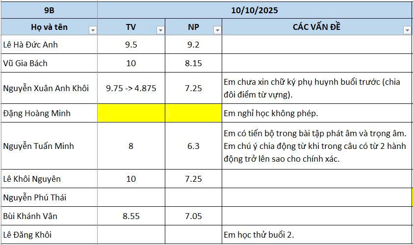 THỨ SÁU NGÀY 10/10/2025 - QLHS 9B