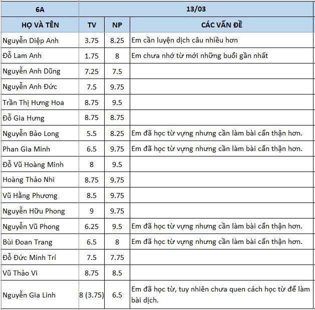 THỨ BA NGÀY 10/03/2026 - QLHS 6A