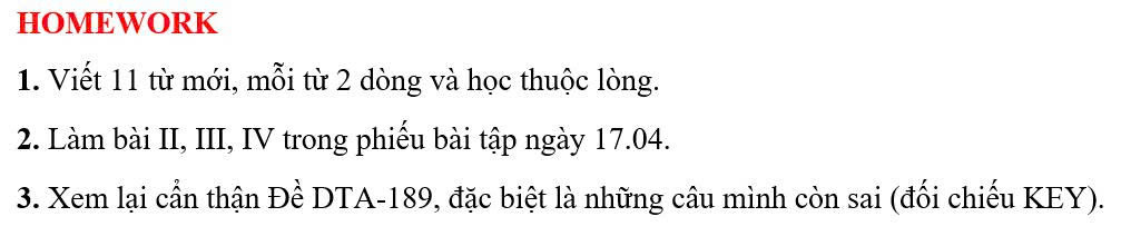 THỨ HAI NGÀY 13/04/2026 - BTVN 9B