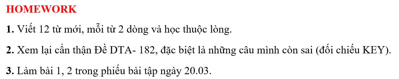 THỨ HAI NGÀY 16/03/2026 - BTVN 9B