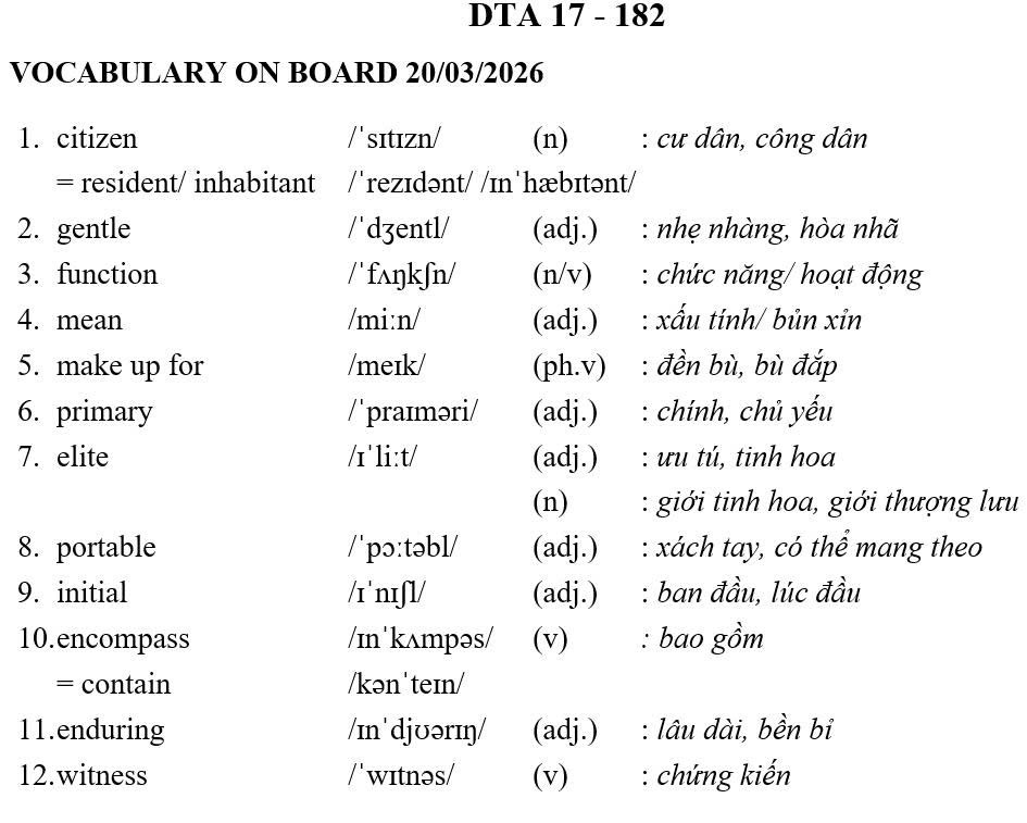 THỨ SÁU NGÀY 20/03/2026 - BTVN 9B