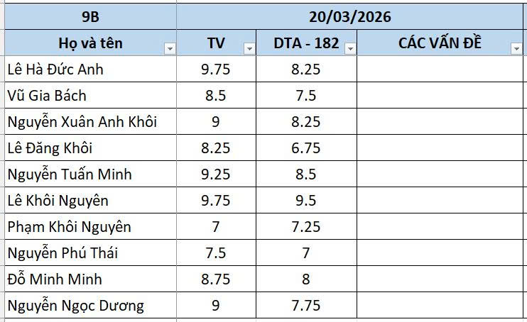 THỨ SÁU NGÀY 20/03/2026 - QLHS 9B