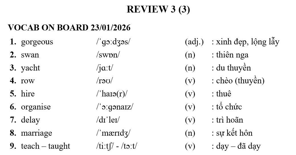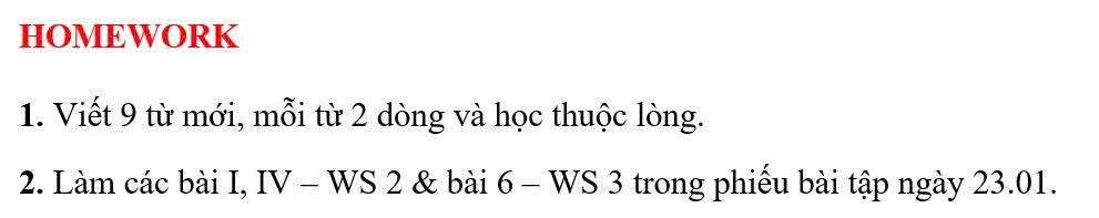 THỨ SÁU NGÀY 23/01/2026 - BTVN 6A