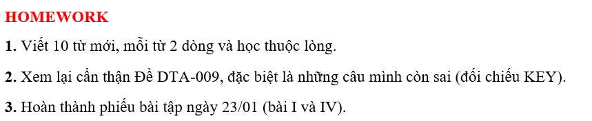 THỨ HAI NGÀY 19/01/2026 - BTVN 9B