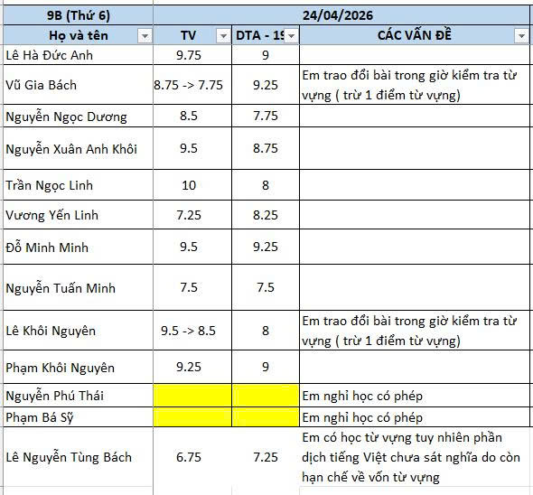 THỨ SÁU NGÀY 24/04/2026 - QLHS 9B