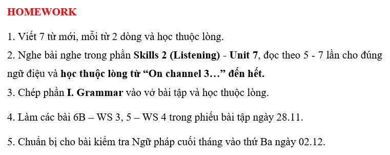 THỨ SÁU NGÀY 28/11/2025 - BTVN 6A