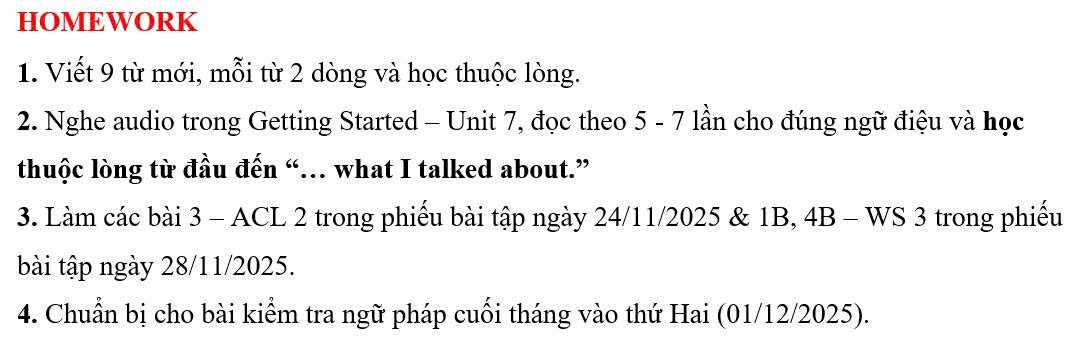THỨ HAI NGÀY 24/11/2025 - BTVN 9B