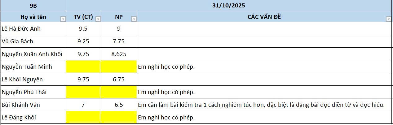 THỨ SÁU NGÀY 31/10/2025 - QLHS 9B