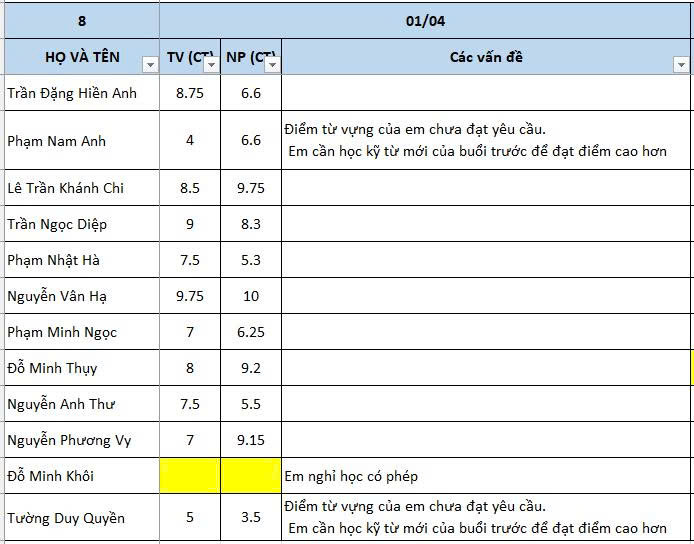 THỨ TƯ NGÀY 01/04/2026 - BTVN 8