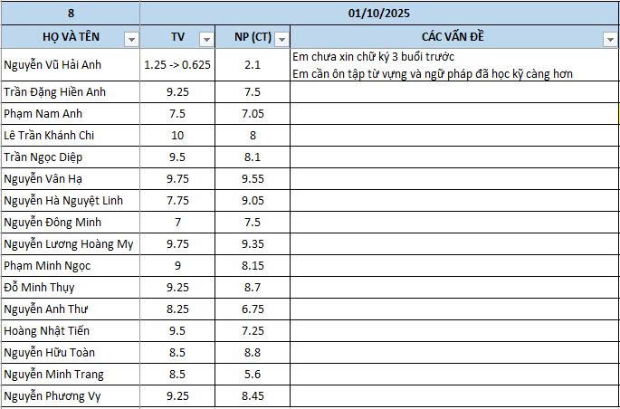 THỨ TƯ NGÀY 01/10/2025 - QLHS 8