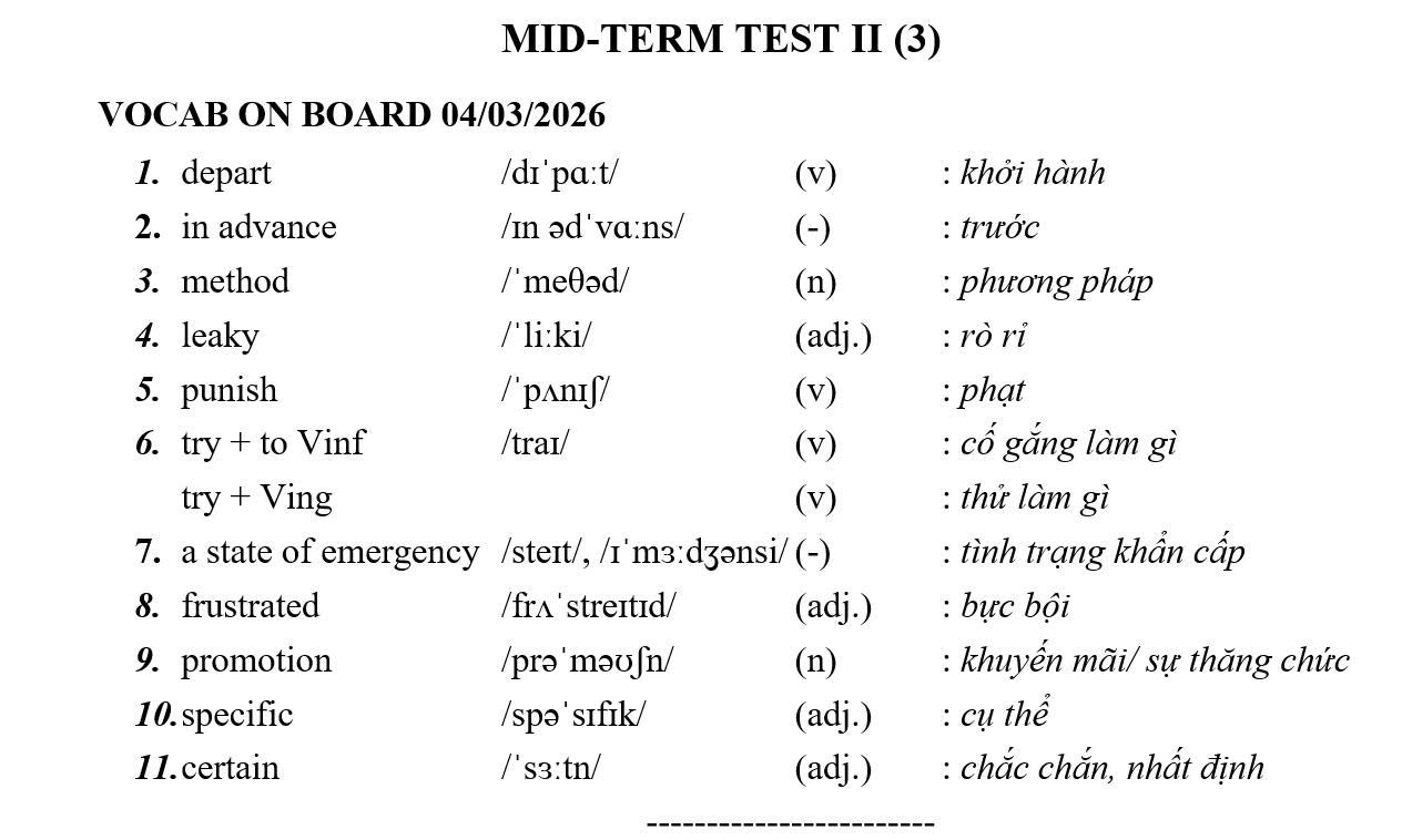THỨ TƯ NGÀY 04/03/2026 - BTVN 8