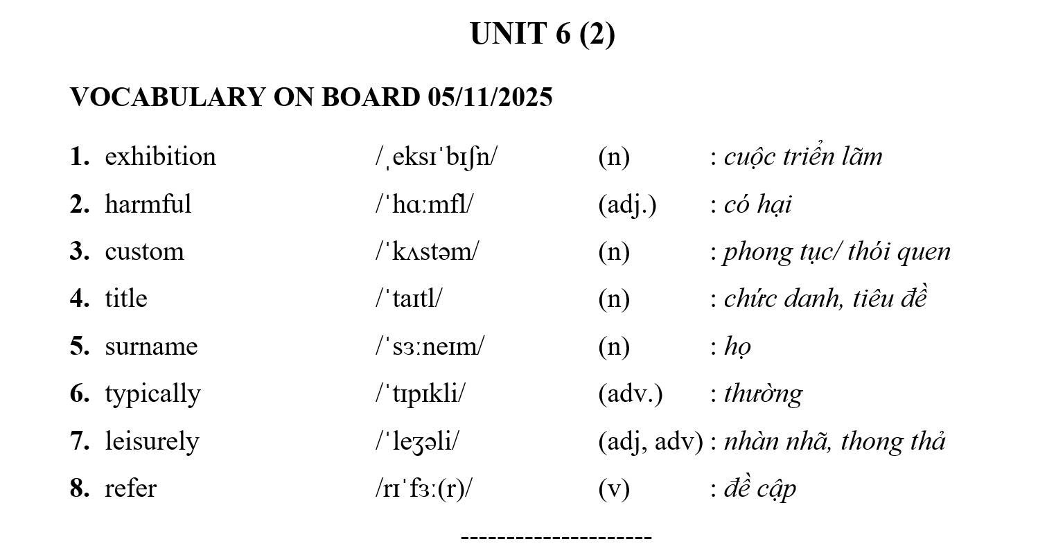 THỨ TƯ NGÀY 05/11/2025 - BTVN 8