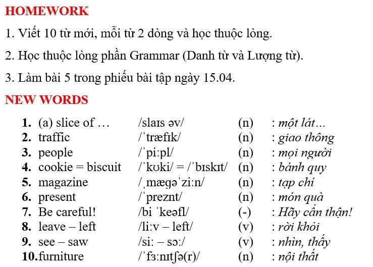 THỨ TƯ NGÀY 15/04/2026 - BTVN 6B