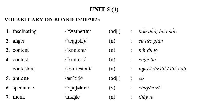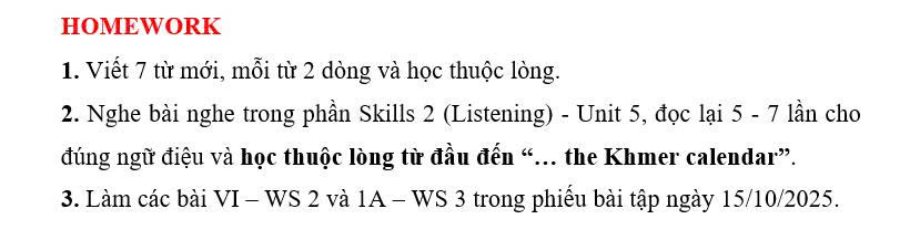 THỨ TƯ NGÀY 15/10/2025 - BTVN 8