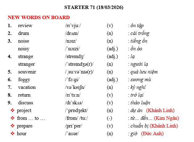 THỨ TƯ NGÀY 18/03/2026 - BTVN 5