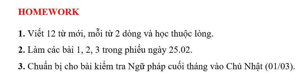 THỨ TƯ NGÀY 25/02/2026 - BTVN 8