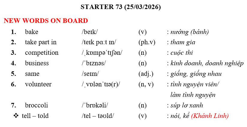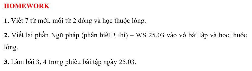 THỨ TƯ NGÀY 25/03/2026 - BTVN 5