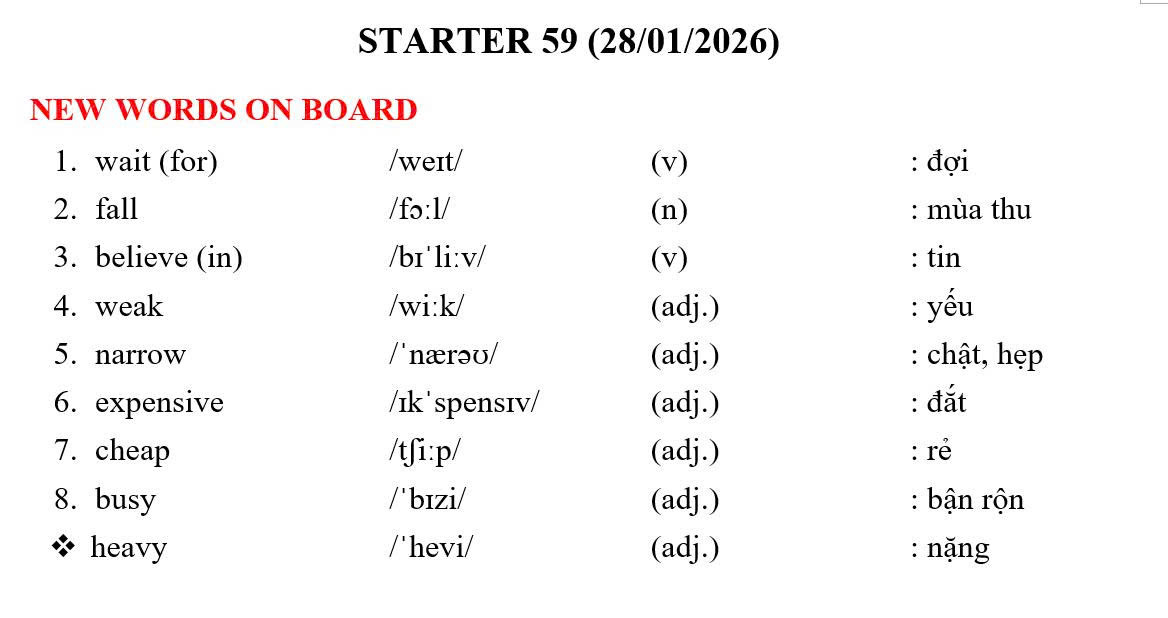 THỨ TƯ NGÀY 28/01/2026 - BTVN 5