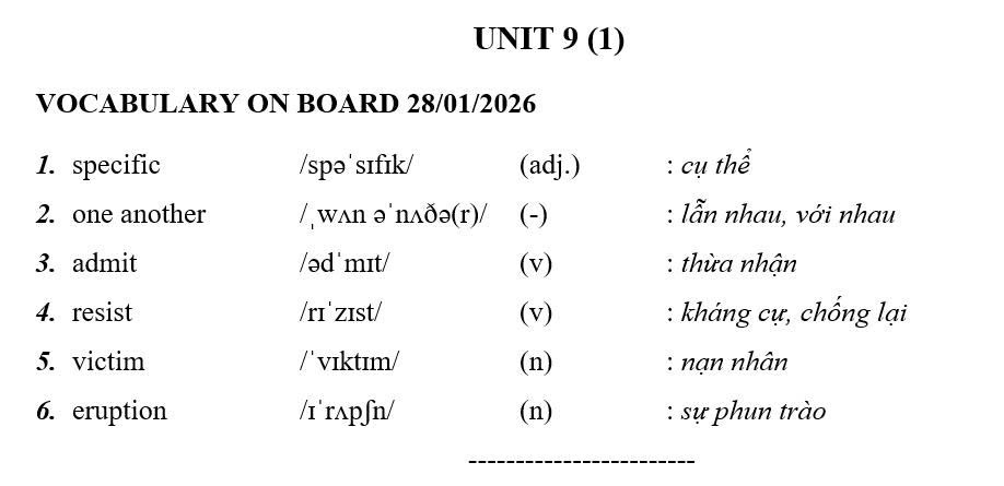 THỨ TƯ NGÀY 28/01/2026 - BTVN 8