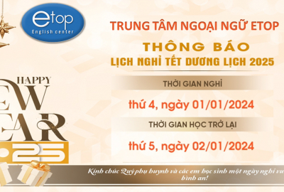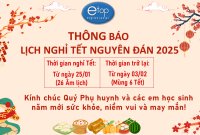 Anh ngữ ETOP xin thông báo đến Quý Phụ huynh và các em học sinh lịch nghỉ lễ như sau: