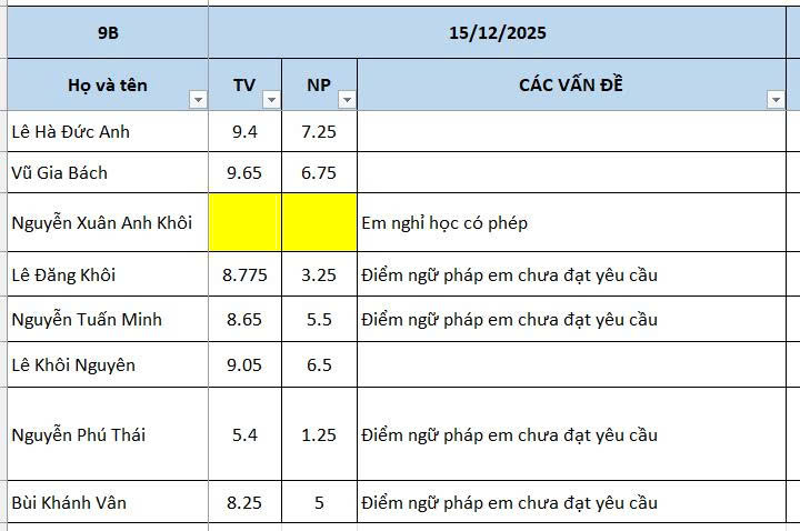THỨ HAI NGÀY 15/12/2025 - QLHS 9B